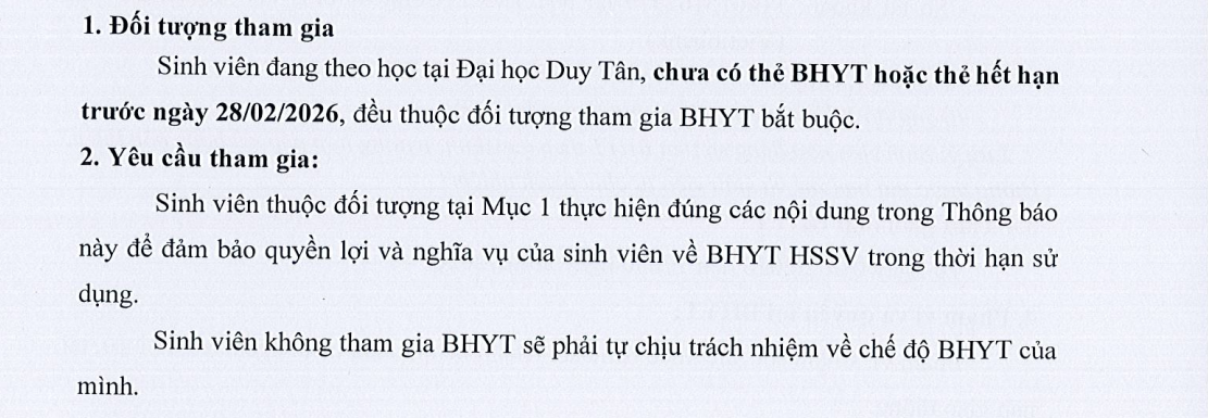 Thông báo tham gia bảo hiểm y tế sinh viên