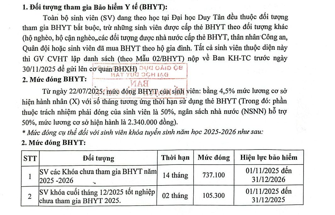 Thông báo thực hiện mua BHYT đối với sinh viên trong năm học 2025-2026