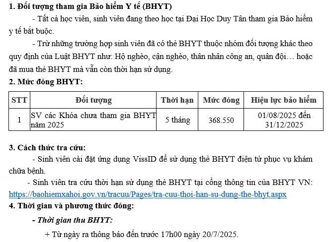 Thông báo về việc thực hiện BHYT năm học 2024-2025