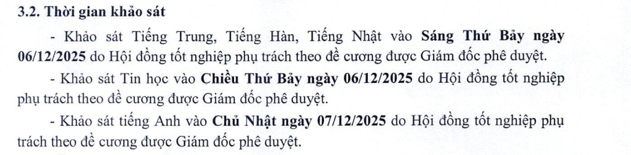 Thông báo về việc tổ chức khảo sát Ngoại ngữ, Tin học đầu ra và thi học phần tốt nghiệp đợt tháng 12/2025