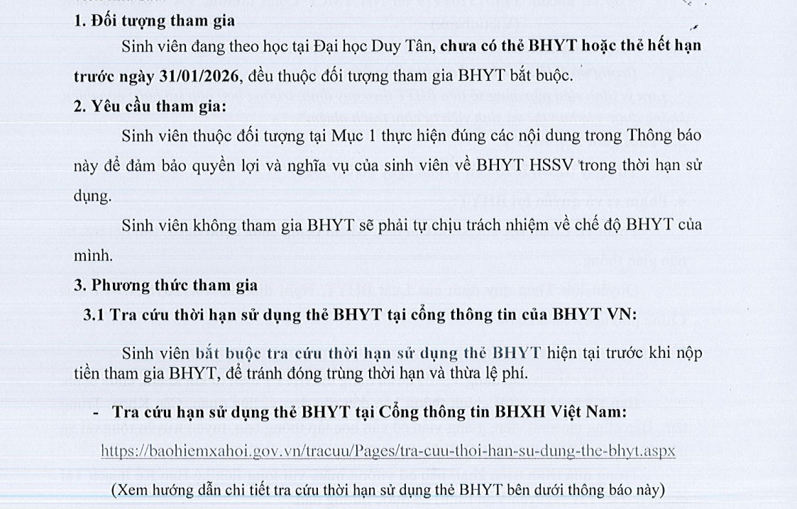 Thông báo tham gia bảo hiểm y tế sinh viên