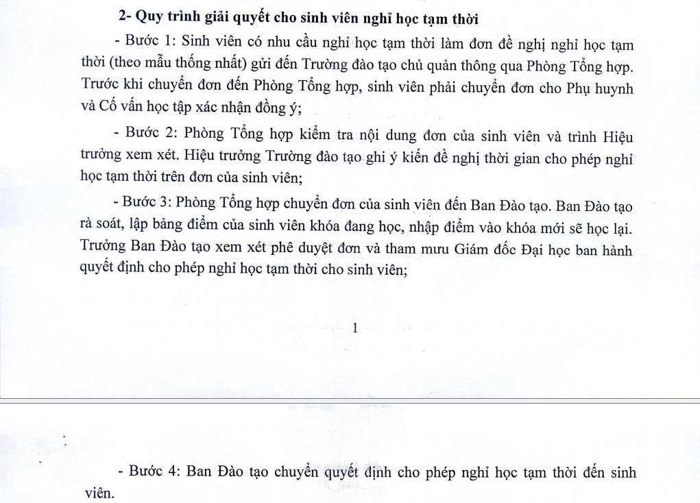 - Thời gian nghỉ học tạm thời được tính vào tổng thời thời gian tối đa được phép học tại trường.