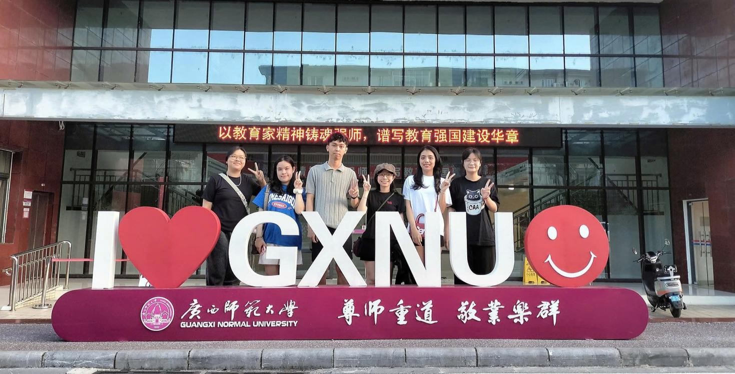 Các bạn sinh viên Khoa Tiếng Trung – Trường Ngôn ngữ & Khoa học Xã hội Nhân văn, Đại học Duy Tân đã có sáu tháng tham gia chương trình du học 1 năm tại Trường Đại học Sư phạm Quảng Tây (Trung Quốc) . Đây không chỉ là một cột mốc quan trọng trong hành trình học tập mà còn là bước ngoặt mở ra nhiều cơ hội quý giá cho sự phát triển toàn diện về kiến thức, kỹ năng và tư duy quốc tế của các bạn sinh viên.